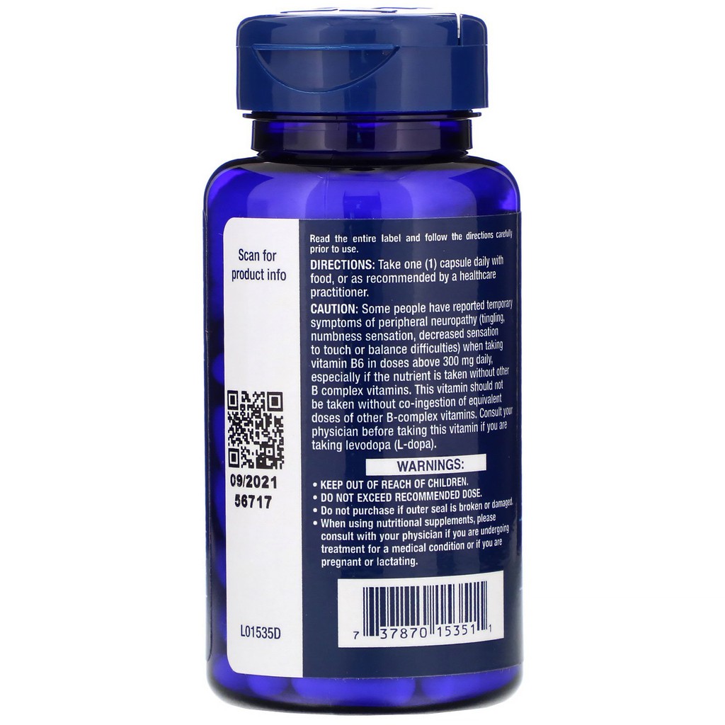 Caution: Some people have reported temporary symptoms of peripheral neuropathy (tingling, numbness sensation, decreased sensation to touch or balance difficulties) when talking vitamin B6 in doses above 300 mg daily, especially if the nutrient is taken without other B complex vitamins. This vitamin should not be taken without co-ingestion of equivalent doses of other B-complex vitamins. Consult your physician before taking this vitamin if you are taking levodopa (L-dopa).